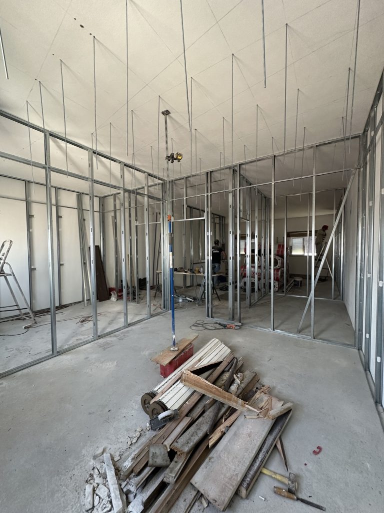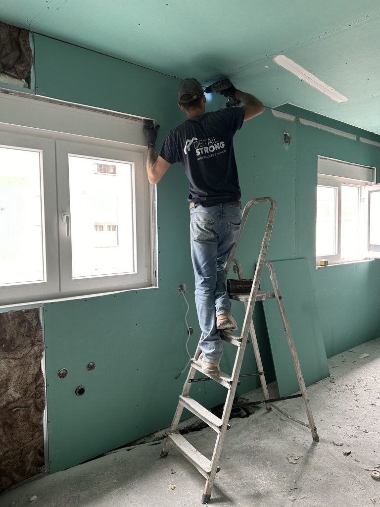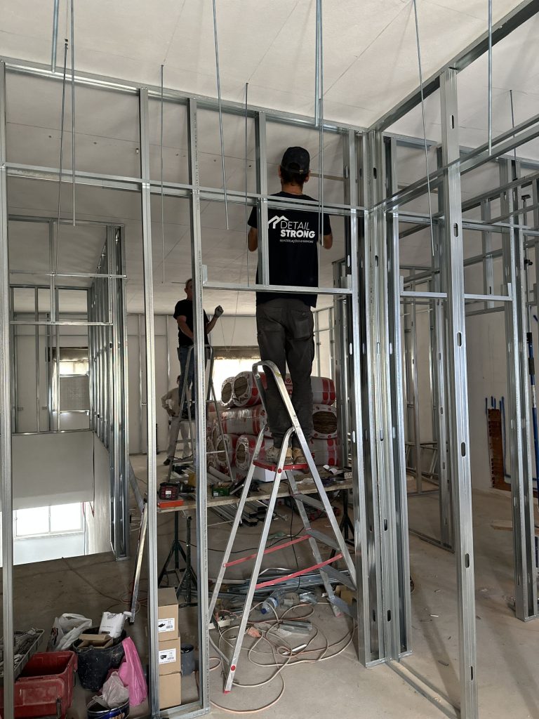 Criação de divisões com estrutura em gesso cartonado